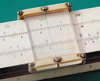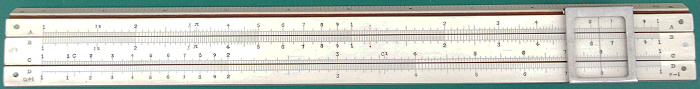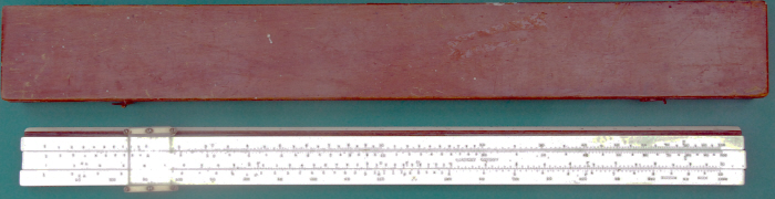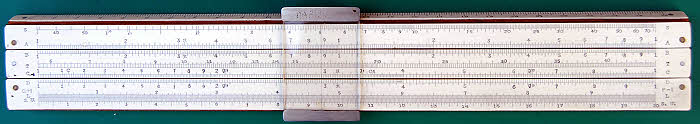 Classic Series IV 10” mahogany and celluloid/paper slide rule. It has a card case. The scales are: in/S,A{B,C1,C}D,T/cm. More Classic slide rules can be seen earlier in this page.