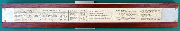 W F Stanley Fredk A Sheppard’s patent Cubing slide rule “with two slides giving at