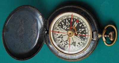 This Magnapole Series II marching Compass dates from World War I. The compass card